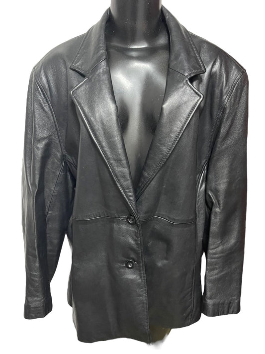 XL Wilsons Pelle Studio Womens 2 Button Soft Black Leather Jacket