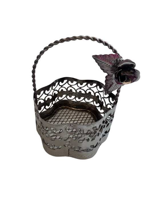 4 Silver Plated Metal Small Baskets Filagree Rose Flower Decor Easter Spring Wedding