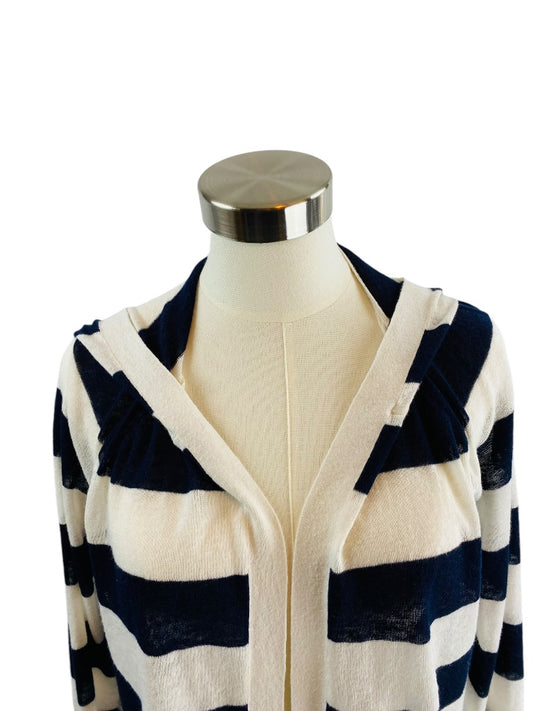 XS LOFT Womens Navy Blue White Striped Linen Blend Sweater Hooded Lightweight