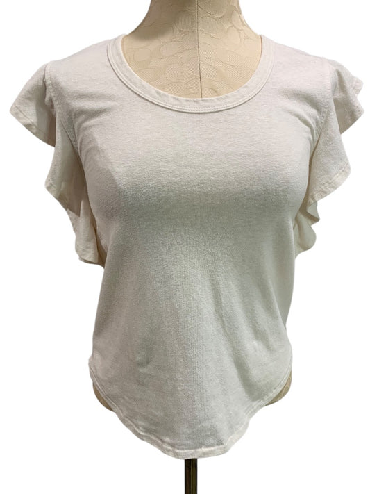 XS Loft Womens Off White Ruffle Sleeve Tshirt Top Scoop Neck