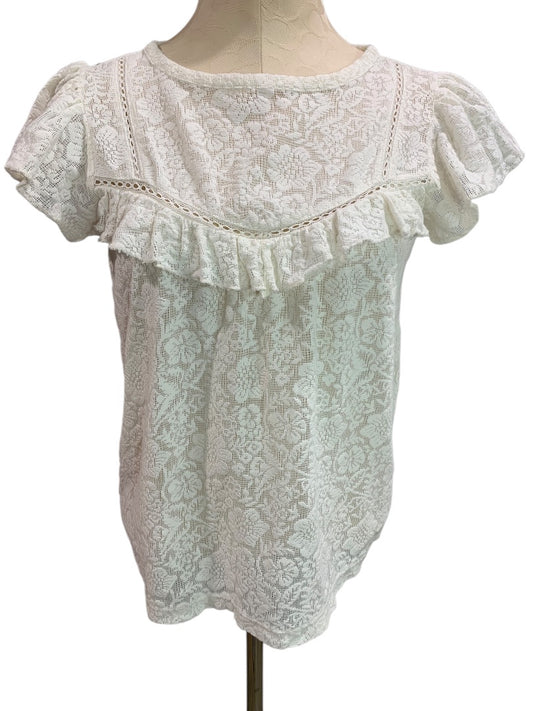 XS Loft Womens Ivory Lace Sheer Blouse Top Shirt Short Sleeve