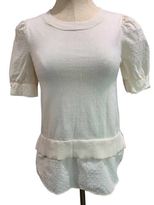 XS Loft Womens Ivory Short Sleeve Sweater Swiss Dot Trim
