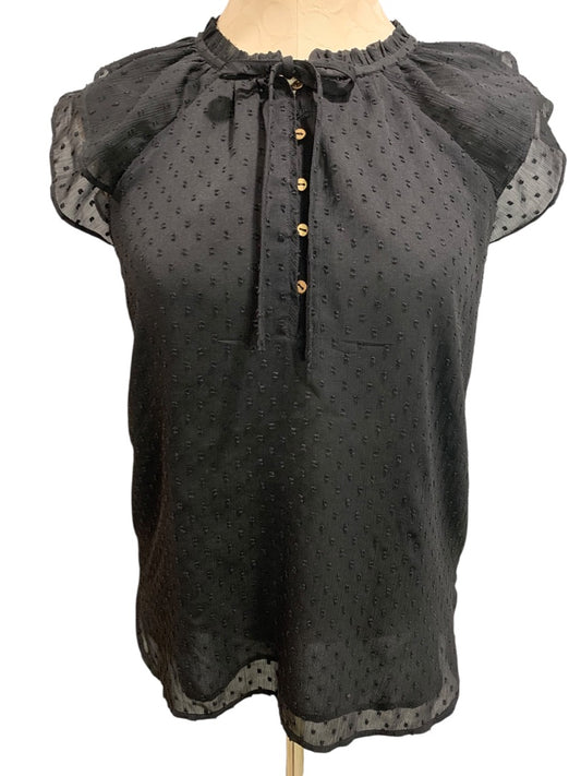 XS Loft Womens Sheer Black Swiss Dot Blouse Shirt