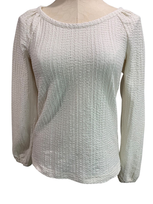 XS Loft Womens Ivory Pucker Stretch Long Sleeve Pullover Shirt Top Oversize
