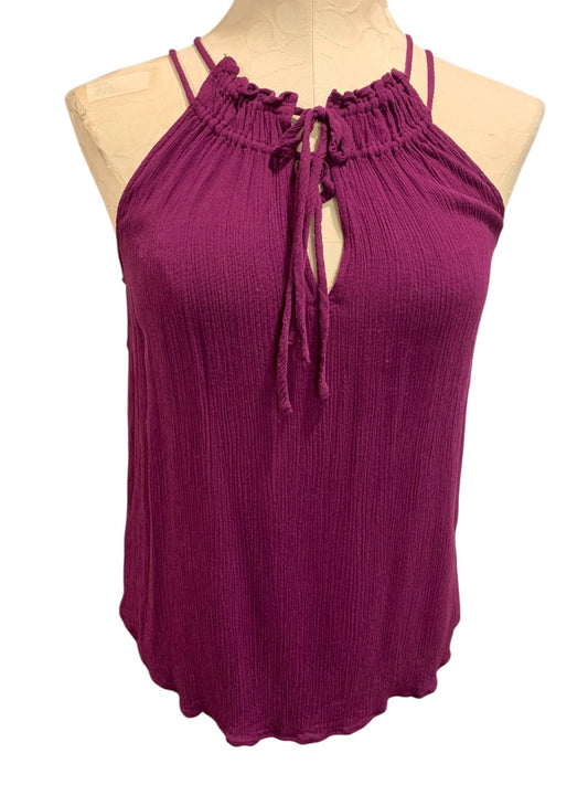XS Loft Womens Purple Gauzy Rayon Shirt Tie Neck