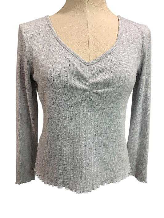 XS Loft Womens Gray Ruffle Sleeve Heathered Tshirt