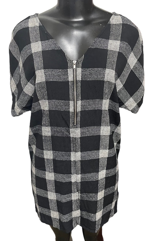 XS Madewell V-Neck Shift Dress Oversize Black White Plaid Lightweight