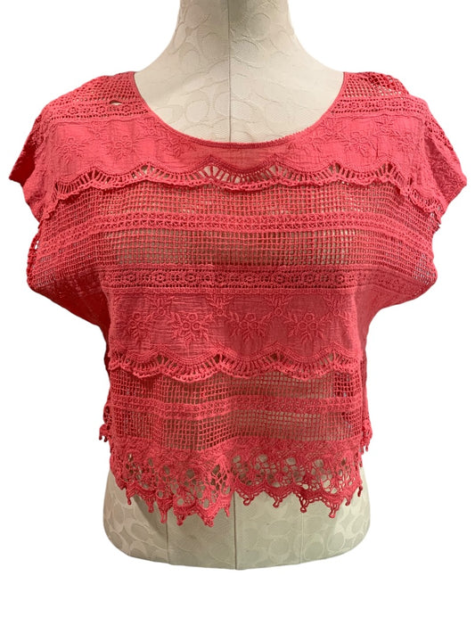 XS Love Marks Urban Outfitters Womens Hot Pink Lace Boho Sheer Top Shirt