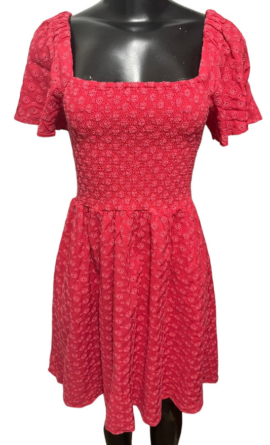 XS Madewell Eyelet Lucie Smocked Mini Dress Pockets Pink