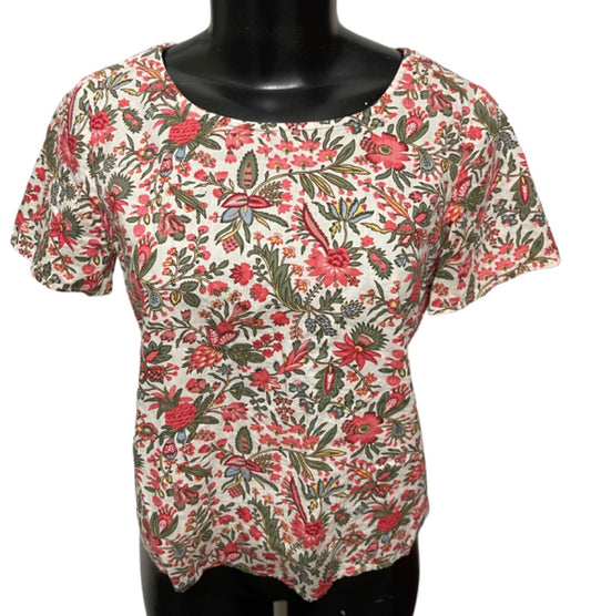 XS Madewell Floral Cotton Short Sleeve Pullover Petal Back Blouse