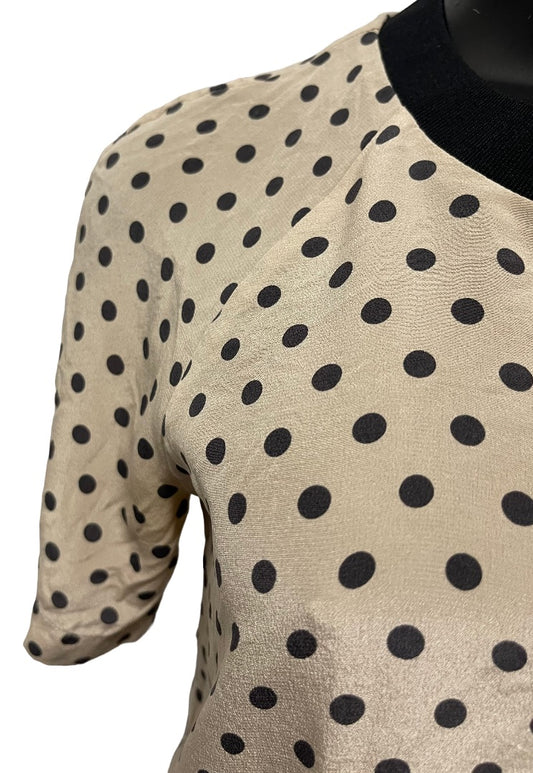 XS Madewell Short Sleeve Polka Dot Womens Silk Blouse Zipper Black Tan