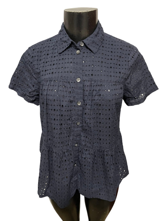 XS Madewell Women's Eyelet Short Sleeve Top Navy Blue Blouse
