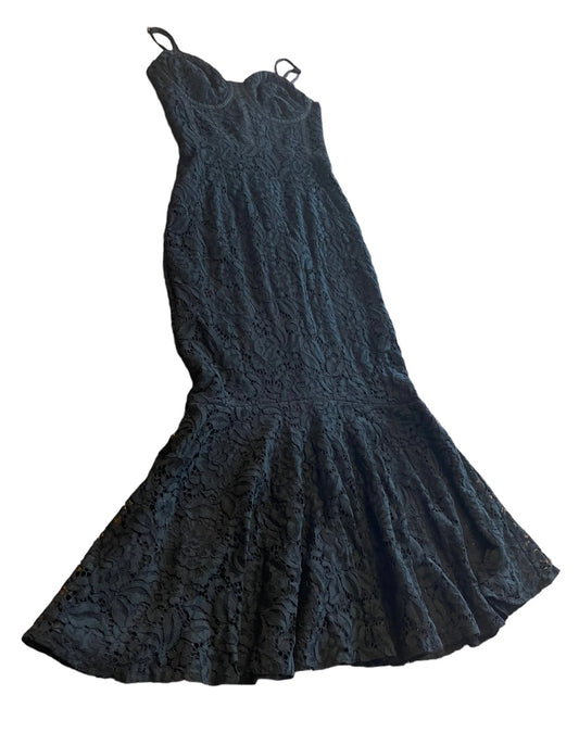XS Lulus Lined Mermaid Lace Dress Black Adjustable Straps Back Zipper