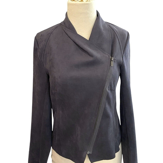 XS Philosophy Faux Leather Suede Asymmetrical Gray Zipper Jacket EUC