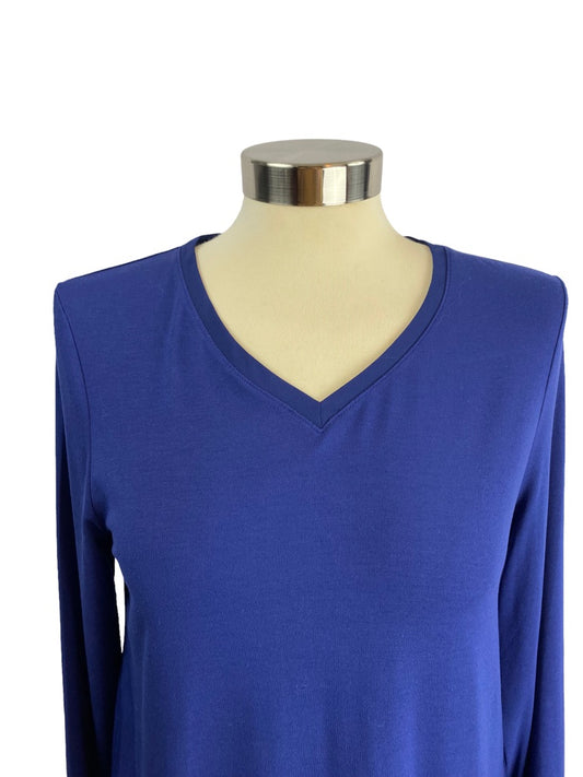 XS Petite Chico's Women's Long Sleeve V-Neck Soft Tunic Shirt Contrast Fabric Hem