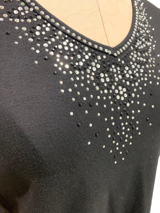 XS Quacker Factory Women's V-Neck Embellished Tshirt Short Sleeve Black