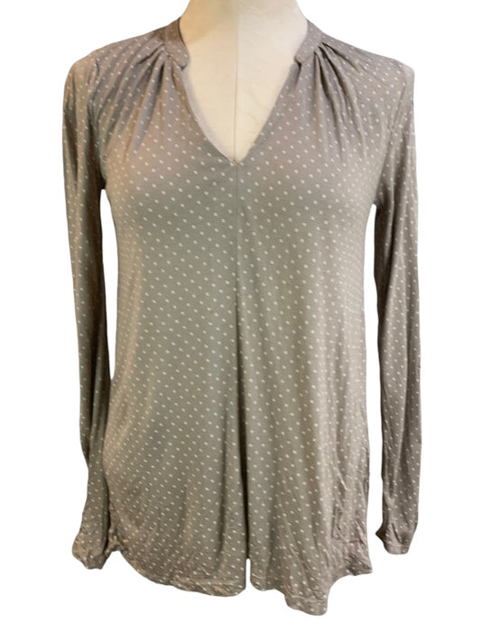 XS Old Navy Women's Brown White Long Sleeve V-Neck Pullover Shirt