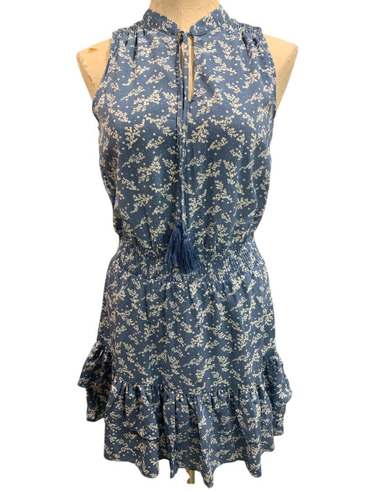 XS Saks Fifth Avenue Dress Peasant Style Blue White Floral Sleeveless