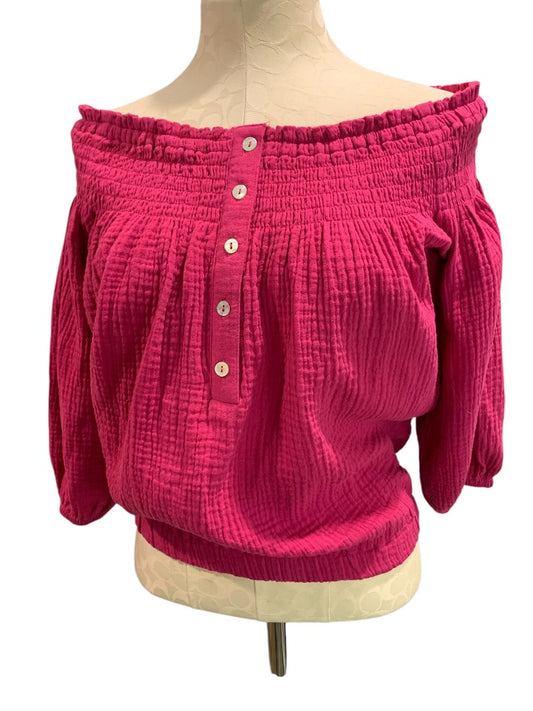 XS Roan + Ryan Fuchsia Womens Off Shoulder Banded Shirt Blouse