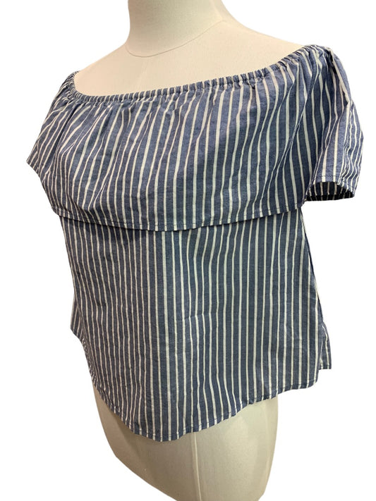 XS Xhilaration Women's Off the Shoulder Blue White Striped Shirt