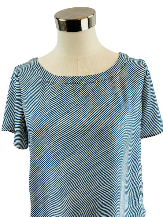 XSP Banana Republic Petite Turquoise Stripe Womens Short Sleeve Blouse