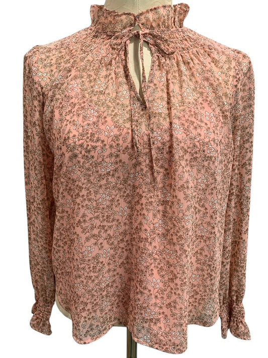 XSP Loft Petites Pink Floral Sheer Womens Blouse with Attached Camisole Long Sleeve