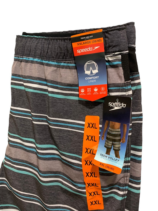 XXL (38/40) Speedo Men's New Gray Striped Swim Trunks Tech Volley Shorts
