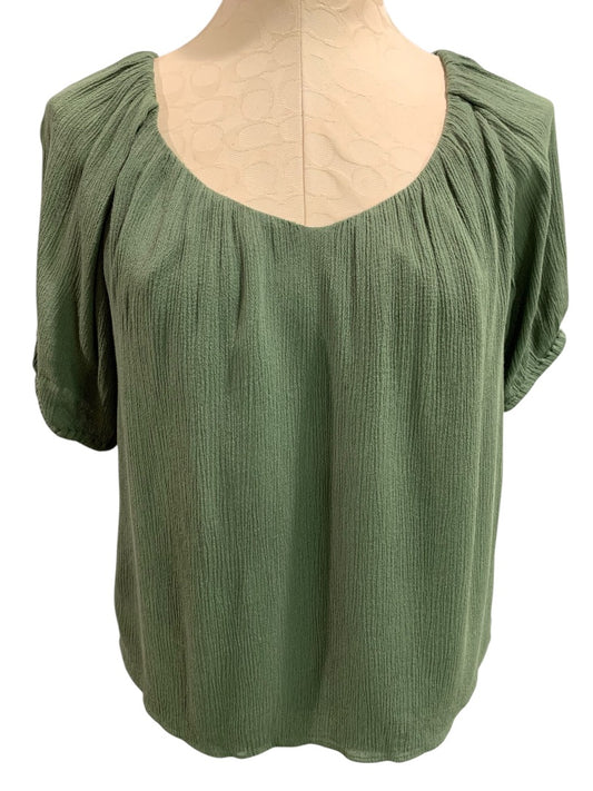 XSP Loft Petites Womens Green Scoop Neck Pullover Lined Short Sleeve Shirt Blouse