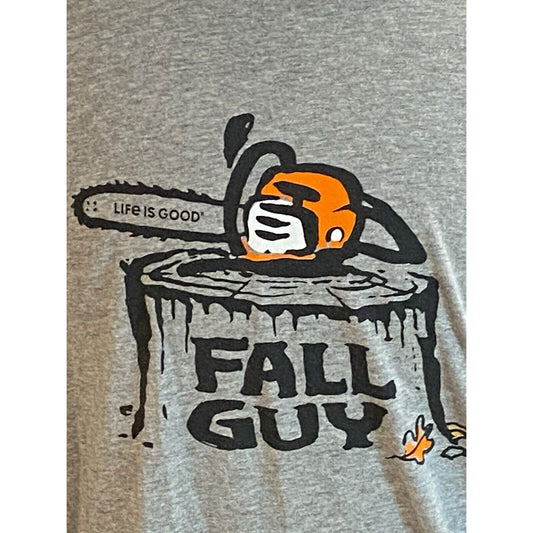XXL Life is Good Fall Guy Chain Saw Crusher Long Sleeve Slate Gray Mens T Shirt