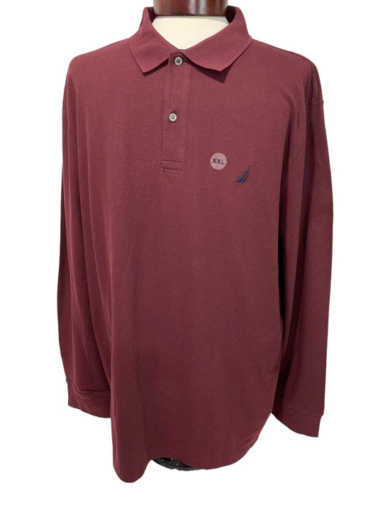 XXL Nautica Long Sleeve Midweight Polo Shirt Mens New Burgundy