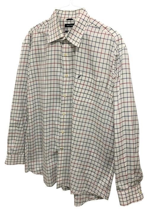 XXL Nautica Mens Button Up Dress Shirt White Black Red Check Wrinkle Resistant