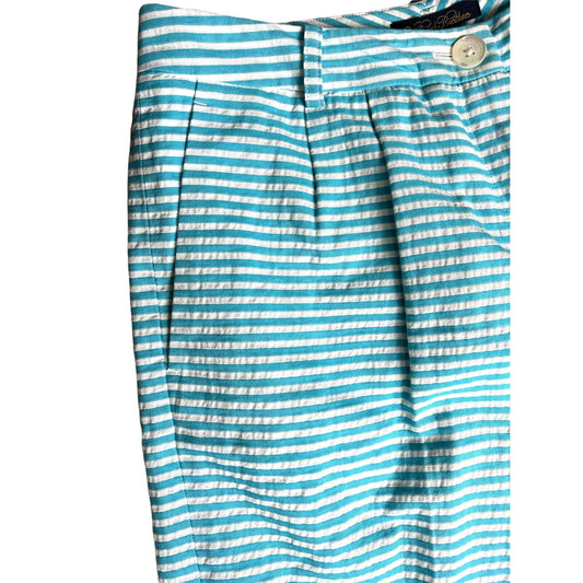 6 Brooks Brothers Womens Turquoise White Horizontal Striped Seersucker Shorts
