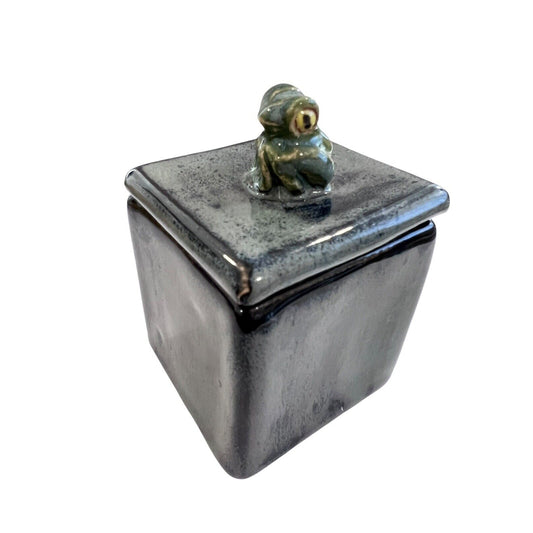 Art Studio Cube Shaped Pottery Trinket Box Glazed Frog Handmade Signed 2” X 2”