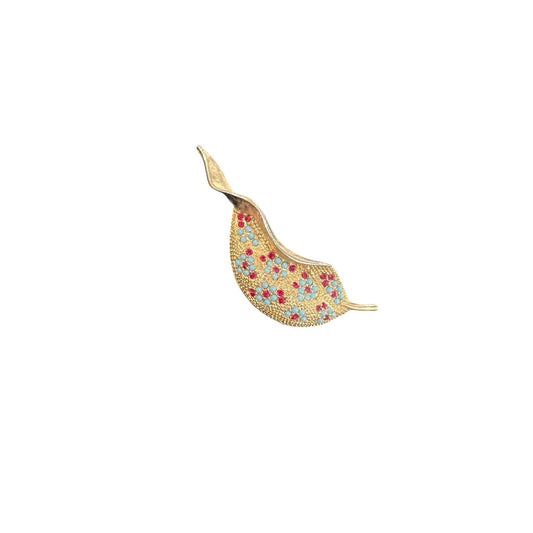 ART Signed Arthur Pepper Blue Red Rhinestone Leaf Brooch Gold Tone Pin