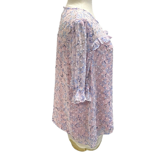 CECE floral print ruffle 3/4 sleeve lined blouse womens Size Large Cottagecore