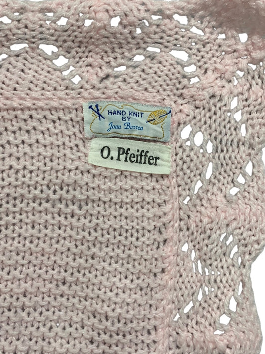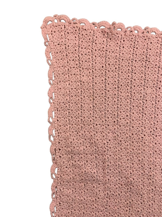 Vintage Pink Hand Knit Baby Blanket 30" x 22" Delicate Trim