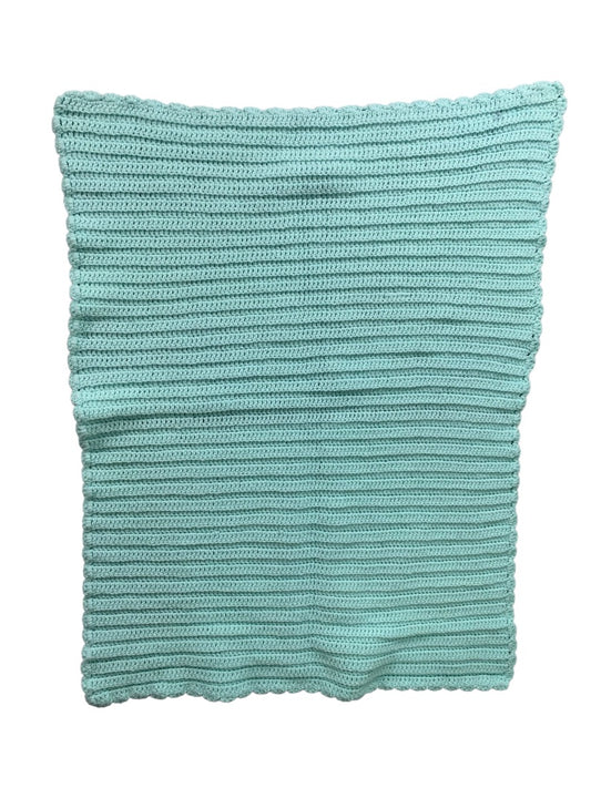 Vintage Mint Green Crochet Baby Blanket 34" x 27" Scalloped Edge