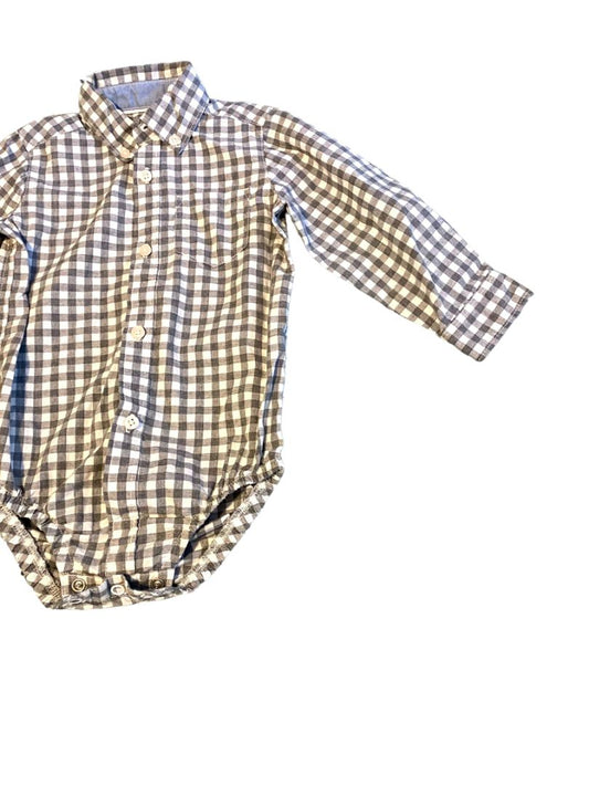 18M Carter's Boys Gray Gingham Button Down Shirt One Piece Snap Crotch