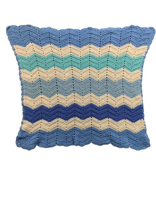 Vintage Crochet Baby Blanket Chevron Blue White 26" x 32"