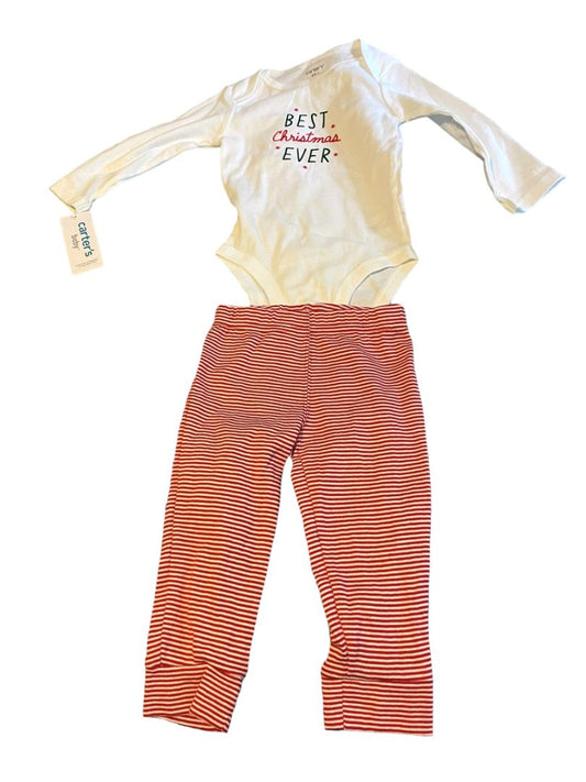 12M Carter's 2 Pc Christmas Outfit Set Snap Crotch Stirped Pants NWT