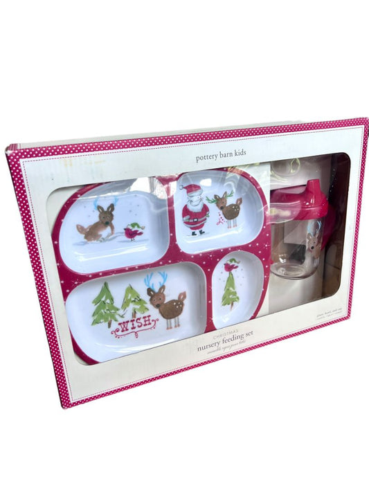 Pottery Barn Kids Christmas Holiday Plate Set Divided Plate Bowl Sippy Cup Santa Holiday NIB