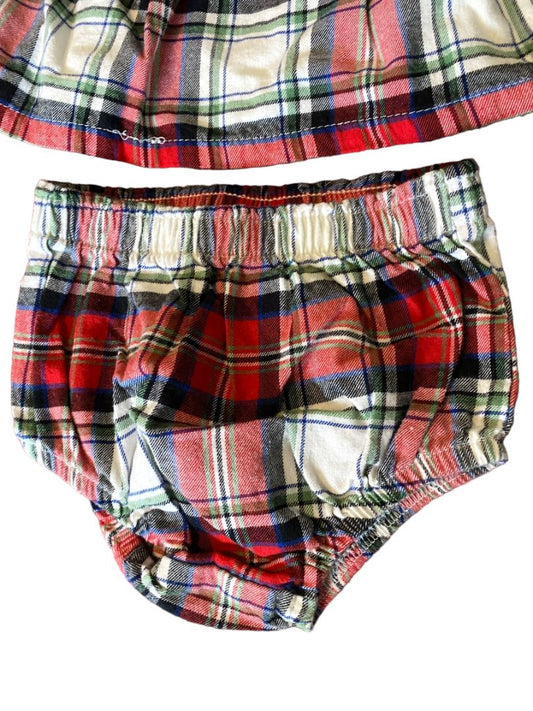 3-6 Month Cat & Jack Plaid Christmas Holiday Dress Set Diaper Cover Bloomers