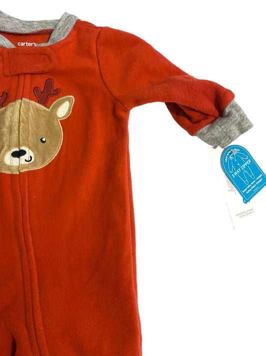 Newborn Carter's Red Reindeer Christmas Footed One Piece Fleece NWT Pajamas Pj's Footie Jammies
