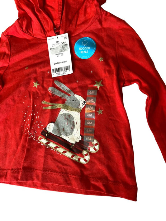 NWT 6M Carter's Hooded Shirt Bunny Sledding Candy Cane Holiday Christmas