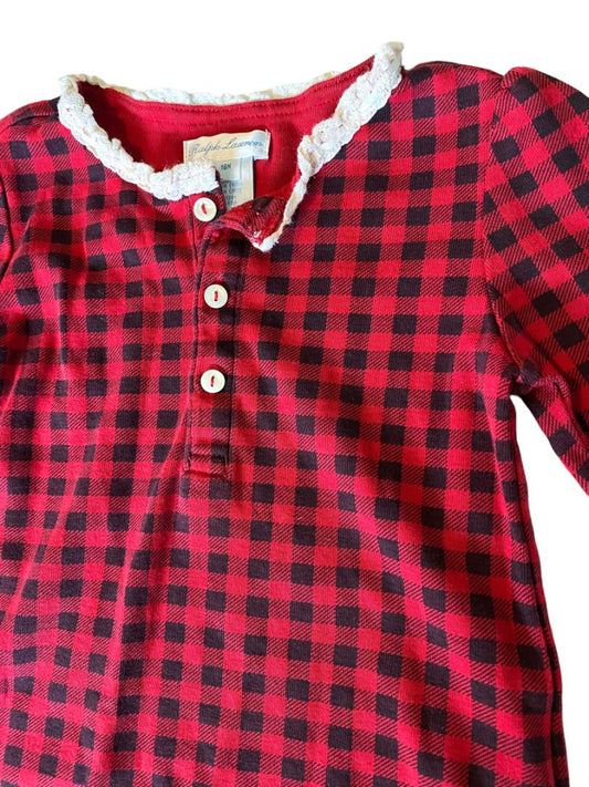 18M Ralph Lauren Baby Red Black Checked Shirt Tip Ruffled Collar Long Sleeve