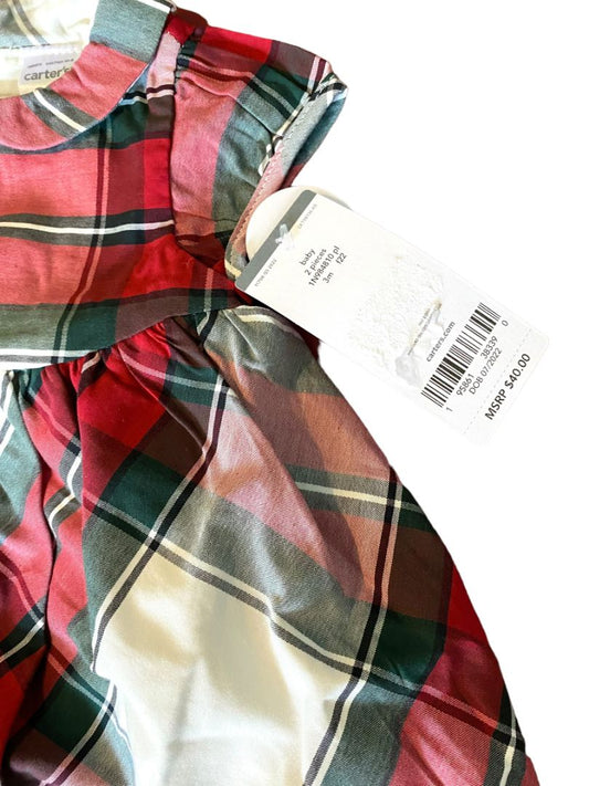 3M Carter's Christmas Plaid 2 Piece Dress Set Short Sleeve