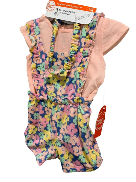 12 Months WonderNation Girls 3 Piece Shortalls Top Headband
