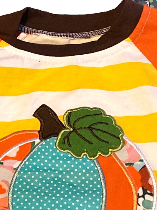 3-6 Months Pumpkin Applique Fall Raglan Shirt Whimsical Holiday