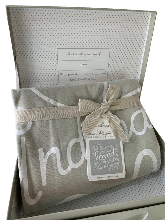 New Hallmark 44" Square Cotton Blanket in Case "and baby was loved . . ."
