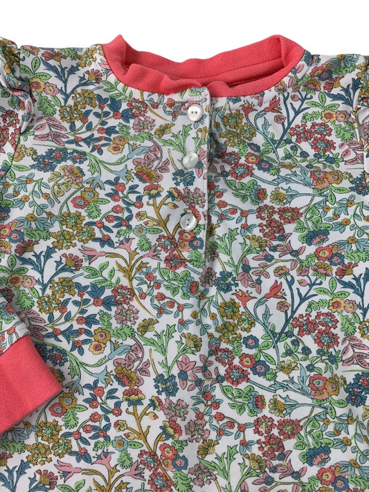 3 Baby Bliss Girls Floral Henley Style Top Shirt Pink Trim 100% Cotton